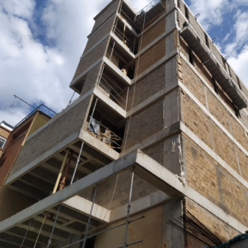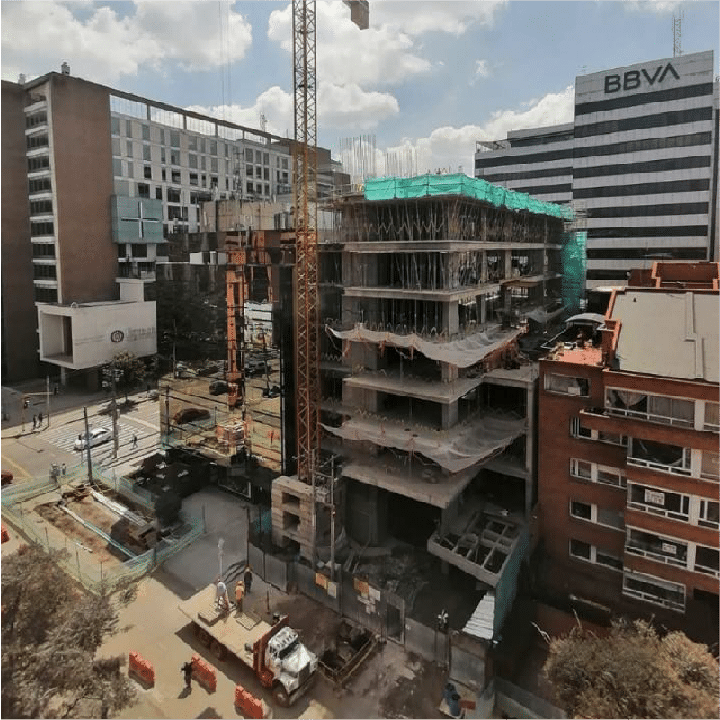 Construcción de un edificio de 8 pisos y tres sótanos para la universidad en época de pandemia con todos los protocolos de bioseguridad