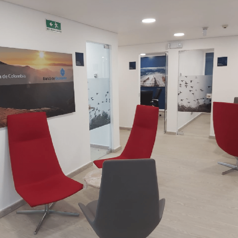 Cada espacio se diseñó con un enfoque en eficiencia, seguridad y estética, alineado con la imagen institucional del Banco de Occidente.